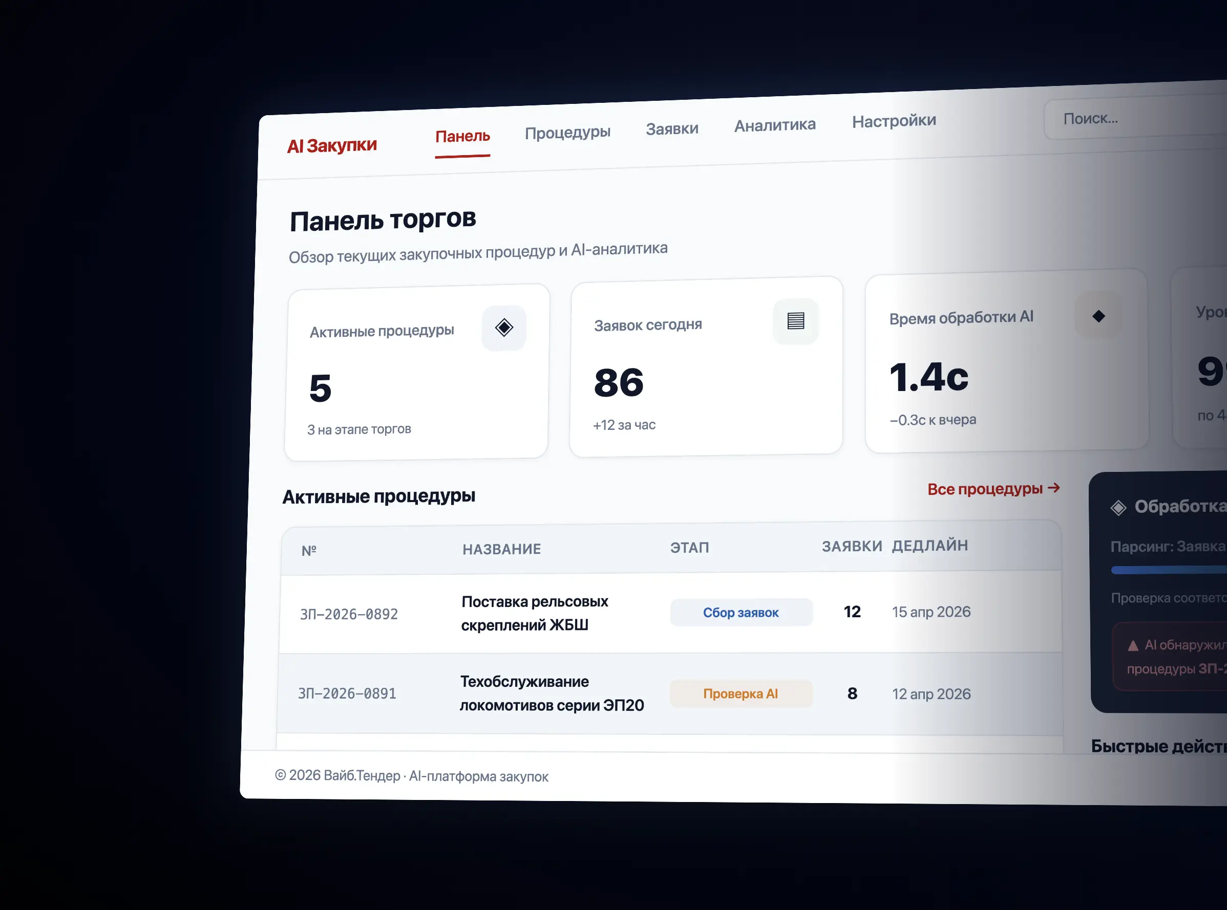 Вайб.Тендер для Заказчиков — ИИ-платформа автоматизации закупочных процедур. AI-оценка заявок по 95 критериям, генерация ТЗ, автоматические протоколы.